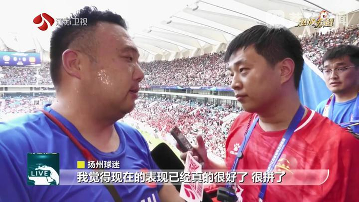 扬州球迷说:“我觉得已经很满意了,我们的队伍已经赢了一场,也有了进球。我觉得现在的表现已经真得很好了,已经很拼了。”