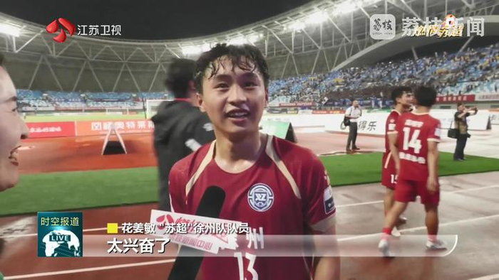 “苏超”徐州队队员花姜敏说:“太兴奋了,很感谢球迷们到来,不到结束不放弃。”