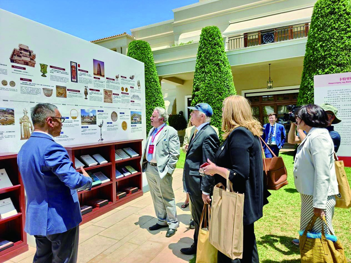 “开启东西文明互鉴之门”主题展览及图书展通过时间长卷、3D打印文物、图文展板、重点书籍推介等多种形式,呈现中华文明与古希腊文明在历史进程中的深层互动与价值共鸣,彰显出“文明因互鉴而丰富”的时代意义。
