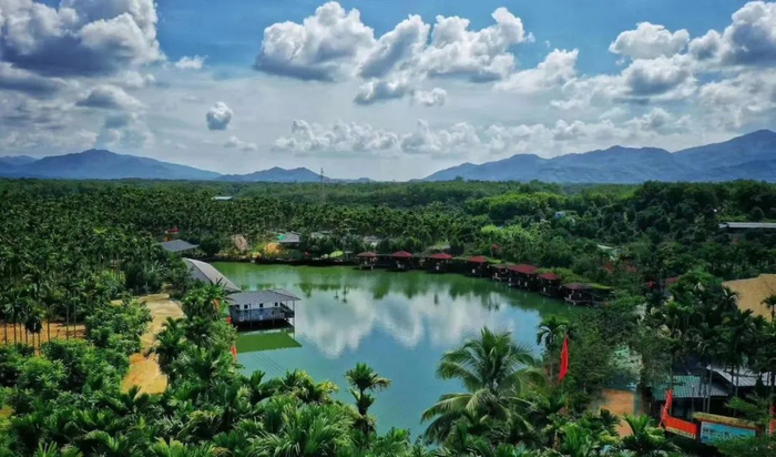 提及三亚,人们常想到碧海蓝天和细软沙滩,却少有人知这座城市还拥有如诗如画的田园景色,大茅远洋生态村位于三亚市吉阳区,这里依山傍水,绿树环抱,空气清新。这里没有喧嚣的海滩人潮,却以青山为屏、碧水为脉,用现代农业的智慧、生态旅游的灵动与乡村文化的淳朴,编织出一幅“望得见山、看得见水、记得住乡愁”的田园画卷。