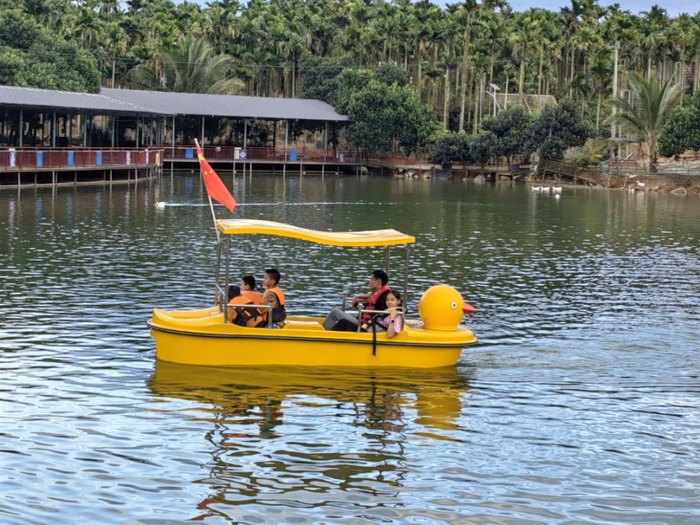 湖上游船,怡然自得。