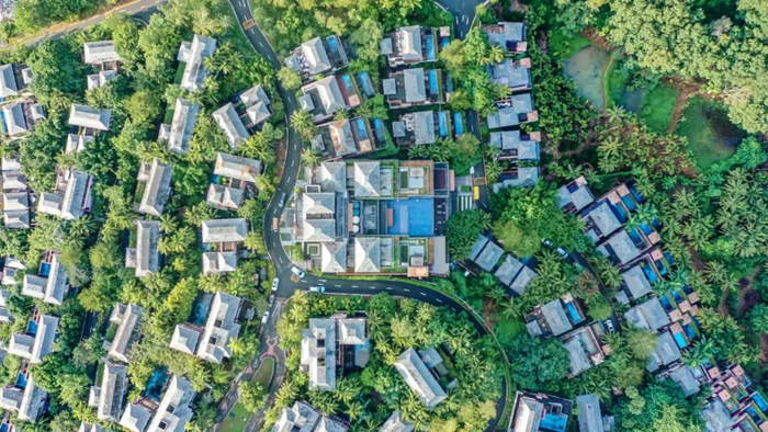 航拍位于三亚市吉阳区的大茅远洋生态村,旖旎风光目不暇接,文化新风扑面而来。记者 沙晓峰 摄