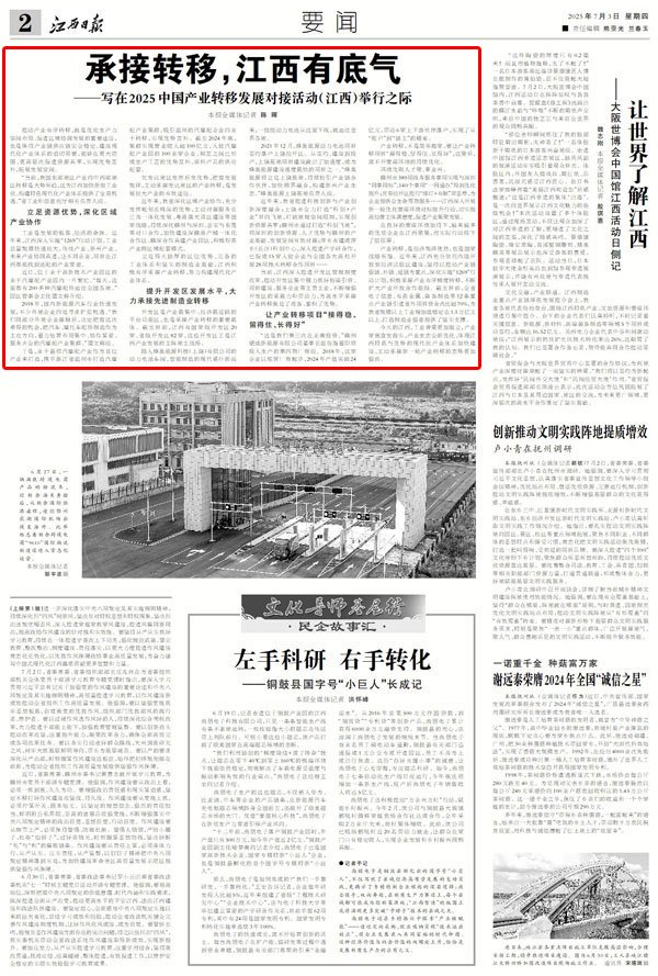 ——写在2025中国产业转移发展对接活动(江西)举行之际