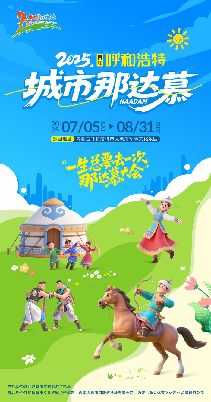本网讯(草原云·内蒙古新闻网记者 马丽侠) 7月5日,“2025首届呼和浩特城市那达慕”将在大黑河军事文化乐园举行,本次活动将持续至8月31日。本届城市那达慕由呼和浩特市文化旅游广电局主办,呼和浩特市文化旅游投资集团、内蒙古首府国际旅行社有限公司、内蒙古劢立体育文化产业发展有限公司承办。本次活动以“传统文化+体育竞技+城市狂欢”为特色,首次将蒙古族那达慕大会的经典元素——马术、搏克、射箭搬进城市,打造“离城市不远、离自然很近”的沉浸式体验。