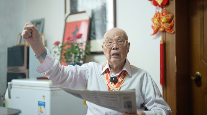 102岁的苏州抗战老兵刘凯爷爷,现在仍然能哼得上几句《毕业歌》,唱到“担负起天下的兴亡!”,他挥起拳头,目光坚毅,仿佛回到了冲锋陷阵的战场。