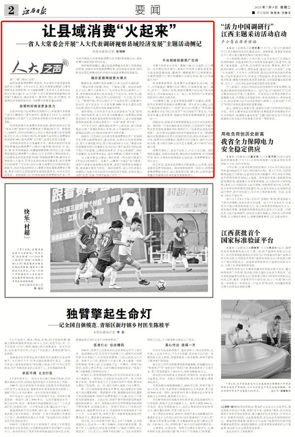 如何促进县域消费扩容提质,为全省经济高质量发展提供有力支撑?今年5至6月,省人大常委会围绕“完善发展服务业体制机制、大力提振消费”,先后深入全省各设区的市和部分县(市、区)开展“人大代表调研视察县域经济发展”主题活动,通过访商户、看项目、找症结、听意见,为县域经济发展把脉问诊,为消费市场繁荣建言献策。