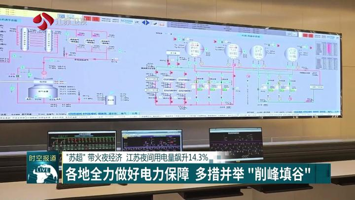 自“苏超”开赛以来,江苏的“夜经济”已然成了球迷们的“第二主场”,最新电力数据显示,江苏近两个月夜间重点时段用电量刷新纪录,同比增幅达14.3%。为助力电力迎峰度夏,江苏93座新型储能电站集中向电网放电,实现了我国最大规模新型储能的集中调用。