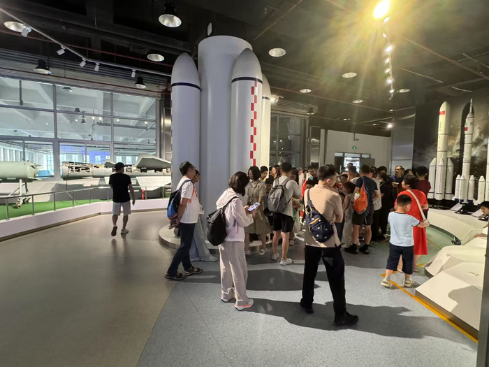 记者注意到,馆内的展品介绍除了一些性能介绍和历史背景外,也会简单介绍其学术原理,寓教于乐。“飞机叫隐形飞机是因为用了相关材料可以不被雷达看见,不是真的能隐形。”市民陈先生一边参观,一边对着自己一对6岁半的子女讲解着。“我家孩子平时就对飞机感兴趣,这次看到高校博物馆对外开放的消息,特意带娃来感受下。”陈先生说。从天津来旅游的杜女士带着9岁的孩子正在参观。“孩子平时对航空知识很感兴趣,我们这次来京就住在附近,看到无需预约,就临时增加了行程,还真是长知识,孩子特别开心,实在是太值了。”杜女士说。“暑假开放后我们迎来了不少游客前来参观,一天大概能接待千人。”门口值守的志愿者说。