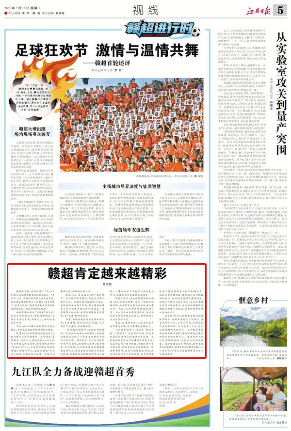 面对联赛初创时“不好看”的担忧,我们不妨怀抱远见:赣超这株新苗,正成长为参天大树,绿茵之上,精彩纷呈指日可待。