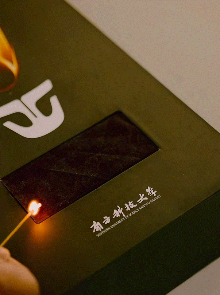 今年南方科技大学给2025级本科生发放的新生盒子里面,有帆布袋、录取通知书、新生指南和印着火炬的“神秘黑盒子”。