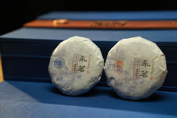 两块名为“永茗”的60克茶砖,拼成复旦“120”周年意象。茶叶源自复旦定点帮扶的云南永平县,一饼红茶为“分享”,邀学子与亲朋共饮录取之喜;一枚白茶取“珍藏”,可经年存放,待未来人生重要时刻回味。