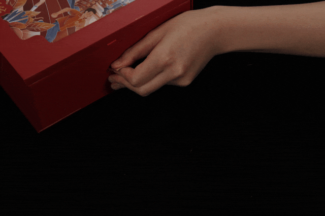 礼盒整体设计灵感源于中国传统书匣,采用复旦蓝为主色调,以绒布包裹,触感温润。内置磁吸机关解锁,结构如古籍书匣般层层展开。