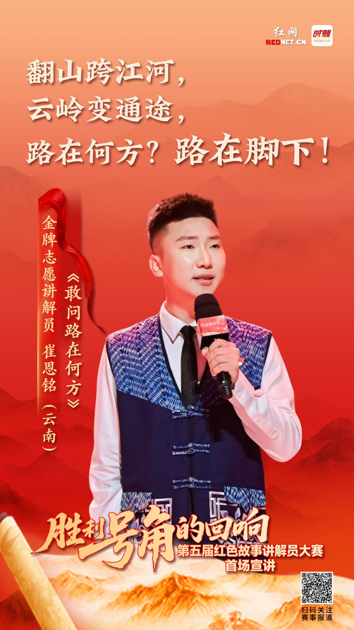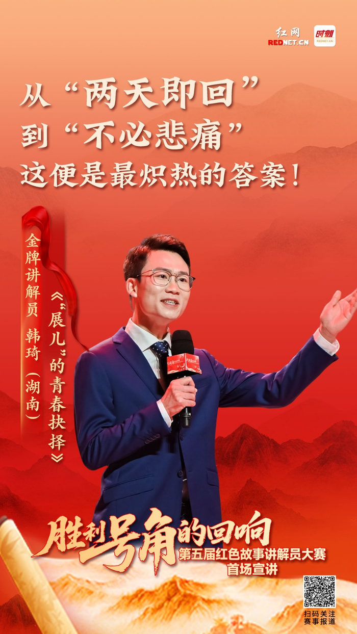 红网时刻新闻7月25日讯(记者 何超 海报设计 钟燕妮)7月25日,第五届红色故事讲解员大赛颁奖仪式暨首场宣讲在长沙市望城区举行。宣讲现场高潮迭起,掌声雷动。六位优秀讲解员代表以抗战时期的英雄故事为题,生动呈现了中华民族在生死存亡之际用血肉之躯铸就的不屈风骨。