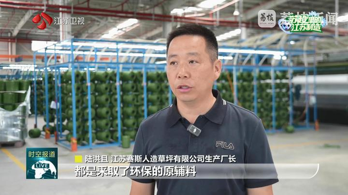 江苏赛斯人造草坪有限公司生产厂长陆洪且说:“我们在工艺配方方面,都是采取了环保的原辅料,它在一些特定的环境下能够防腐,保证它的使用年限。人造草坪它可以全天候使用,无需打理,后续的维护成本很低。”