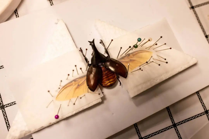 孩子们戴上手套,小心翼翼地拿起昆虫针,细致调整姿态,完成防腐处理,让甲虫的铠甲、蜻蜓的薄翼,化作一本本立体的、可触摸的“生态百科全书”。