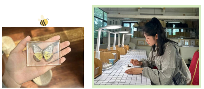 把昆虫或植物素材注入树脂,在浇筑、打磨与抛光后,把另一种生机的迸发封存于掌心方寸。