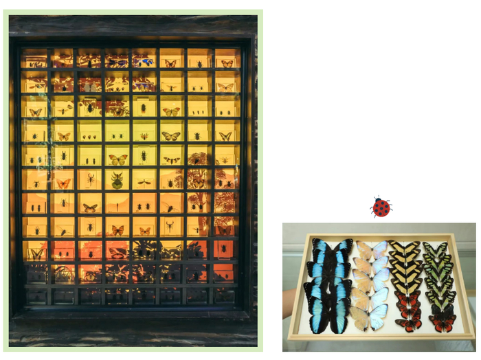 满墙的标本展示区更迷得人走不动道,各种虫子的标本都能在这近距离观察,彩虹般绚烂的蝴蝶标本和宛如跌进金色海洋的琥珀标本更是一绝。