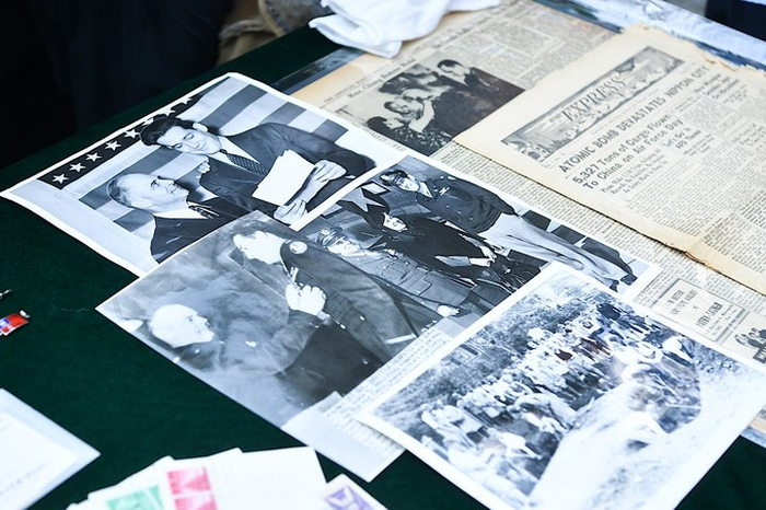 抗日航空英烈鲁美音侄孙鲁照宁捐赠了32件(套)文物史料,包括报纸、照片、徽章等,此次鲁照宁捐赠的文物,还有多件反映抗战胜利、日本投降和反法西斯联盟成立的实物。其中尤为珍贵的是一张1945年8月9日的Hump Express(《驼峰快讯》报)和3张杜立特与儿子小詹姆斯·哈罗德·杜立特的原版新闻图片。