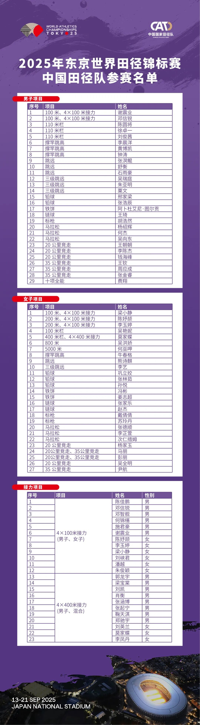 曾经见证中国田径过往辉煌的东京新国立竞技场,如今将迎来中国田径队的焕新出发。9月13日至21日的9个比赛日里,期待中国运动员创造更多“了不起的每一刻”。