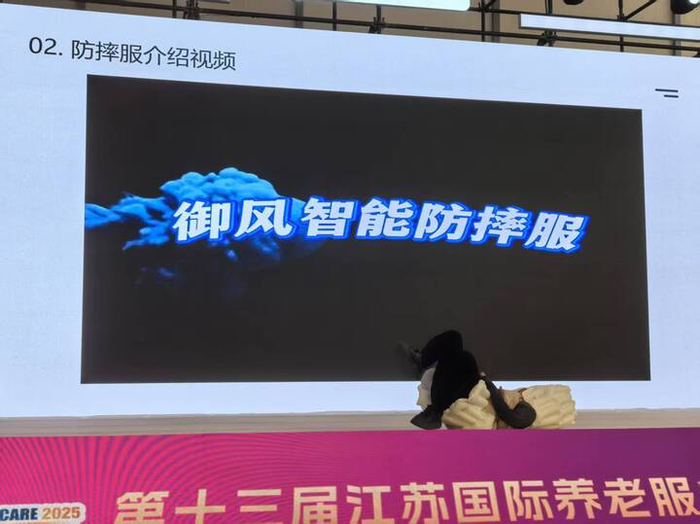 “这件看似普通的马甲,售价3680元,究竟藏着什么奥秘?”在路演舞台上,南京御风智能科技有限公司总经理兼总工程师刘斌卖了个关子。话音未落,身着马甲的演示模特突然摔倒,刹那间,马甲里的气囊在头部和腰部位置瞬间弹出,模特安然无恙,观众虚惊一场。