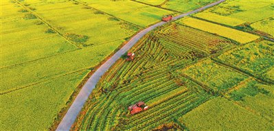 10月29日,在江西省南昌市南昌县向塘镇剑霞村,晚稻收割作业加紧推进。朱海鹏摄(人民视觉)