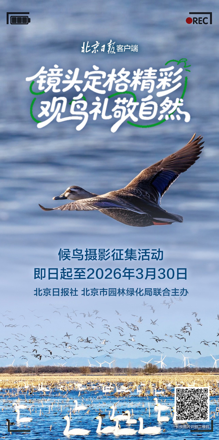 您可以在北京日报客户端京城拍客首页,响应“点击支持 文明拍鸟”倡议,承诺文明观鸟、拍鸟,为保护候鸟尽自己的一份力量。