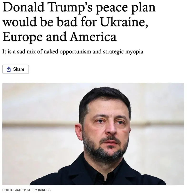 《经济学人》分析:特朗普的和平方案,对乌克兰、欧洲和美国都没好处。