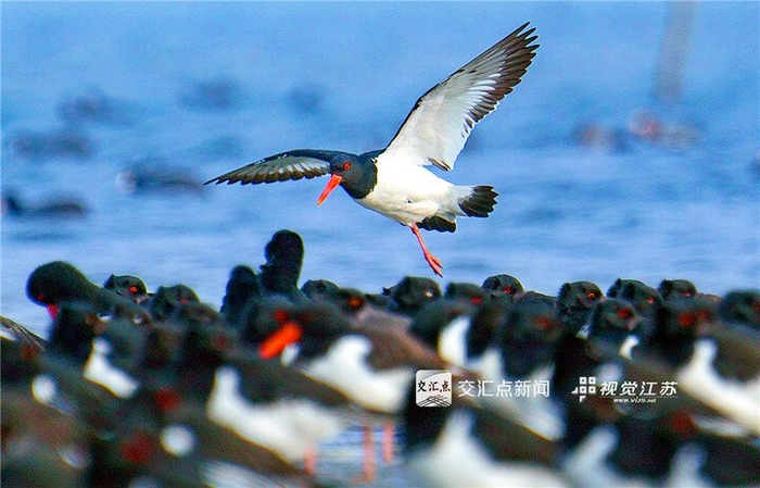11月3日,连云港市赣榆海州湾沿海湿地,包括反嘴鹬在内的大批候鸟来此栖息繁殖。司伟摄 视觉江苏网供图