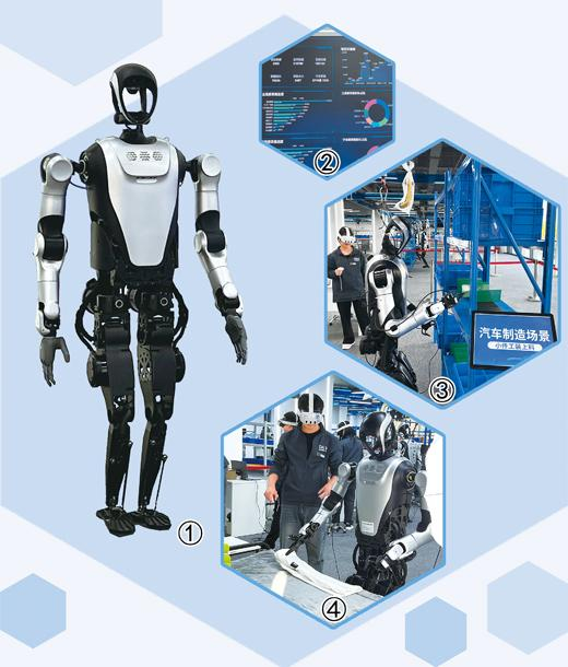 图①:训练中心展厅里的人形机器人。