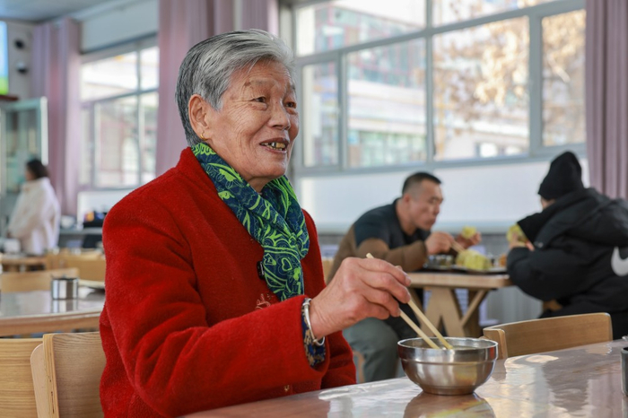 1月13日,酒泉市金塔县金大村互助幸福院的助老爱心餐厅里饭菜飘香、暖意融融,老人们正在挑选喜爱的餐食,脸上洋溢着幸福的笑容。