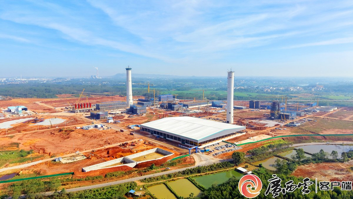 记者走进港南区首个百亿元级制造业项目——贵港市植护元创生活用纸全产业链项目,看到多栋建筑主体已封顶,两个超百米的集束烟囱高高耸立,挖掘机、渣土车往来穿梭,数百名建设者或在焊接或在砌墙或在安装设备,建设现场一片热火朝天。