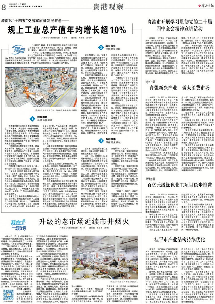 广西日报贵港头条|港南区“十四五”交出高质量发展答卷——规上工业总产值年均增长超10%
