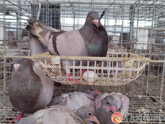 港南区湛江镇富硒鸽养殖基地,一排排标准化鸽舍整齐排列,自动化料线精准送料,鸽舍内鸽声阵阵。“一个棚能养1344对种鸽,每月产2000羽乳鸽,按现在的行情,每年纯利润能有7万元到8万元。”养殖户谭达裕一边麻利地给鸽子投喂饲料,一边算起了增收账。