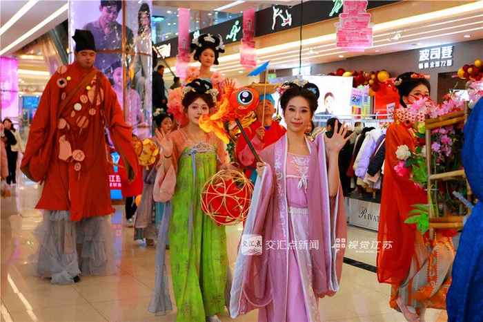 1月1日,南通市区一商场举行新年国潮风主题巡游,为顾客打造一场传统文化的新年盛宴,持续激发消费活力。陆平 摄 视觉江苏网供图