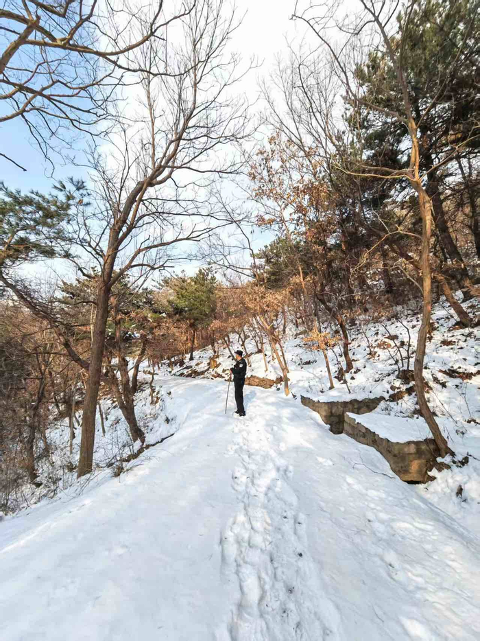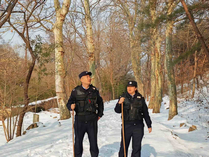 踩着过踝积雪,向山林深处走去。景区因冬季防火已封山,唯有民辅警日复一日巡逻留下的脚印,在蓬松雪地上延伸向远方。“冬天草木干枯,一点火星就可能酿成大祸,封山后的巡逻更不能松懈。”张洋洲弓着身子,用登山杖试探着前方。他的谨慎,源于无数次教训与经验。