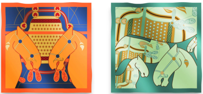 在青州博物馆,其馆藏的西汉彩绘陶马不再只是玻璃展柜内不可及的静观之物。其身上精美的马鞍纹样,被巧妙提取,化作一方丝巾上的流动图案——“马到成功”丝巾,颜色鲜艳、寓意吉祥,成为游客争相选购的“爆款”。