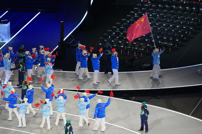五星红旗在圣西罗体育场迎风飘扬,中国风尚成为双城盛会上一抹亮眼的色彩,中国体育代表团的亮相,点燃了每一个国人的冬奥热情。