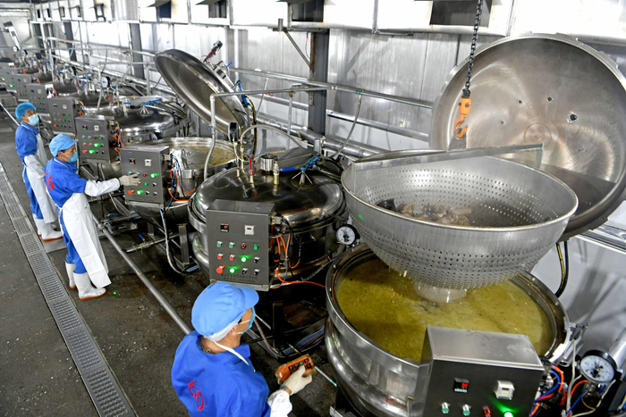 在淮南市八公山区,安徽旭咚食品科技有限公司的牛肉汤中央厨房内,工人们正熟练地对汤料包熬制、牛肉切片、配料封装等关键环节进行巡检。从凭经验“掌勺”到标准化作业,这家曾以“一口锅”起家的本土牛肉汤企业,得益于当地的相关政策扶持,实现从小作坊式向“全产业链”发展的关键跨越。目前,该企业标准化生产的冷冻牛肉汤,每日通过线上平台销往全国超300座城市,并入驻知名线下商超。