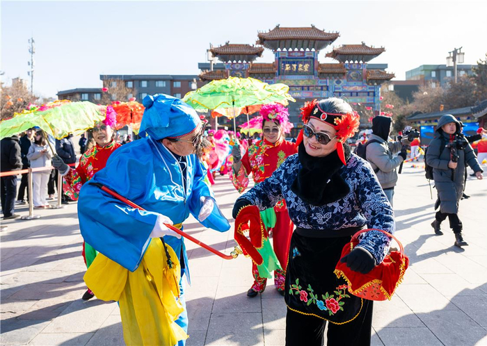 本次活动涵盖文明集市、非遗展销、社火表演、年货市集及互动游戏等板块,让市民在逛、赏、品、购、玩中沉浸式感受传统年俗魅力。非遗传承人现场展示技艺,特色年货琳琅满目,民俗表演轮番上阵,互动体验趣味十足,古街与新春氛围相映成趣,尽显塞上青城独特的文化底蕴与烟火气息。