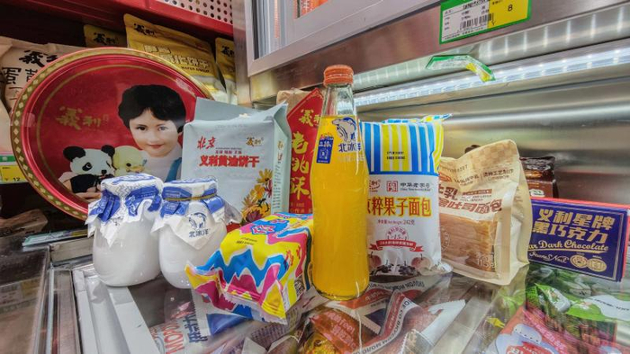 在义利“北冰洋”门店,旅客可以买到预包装的义利“大果子”面包和维生素面包。2月10日,习近平总书记来到北京市隆福寺街区的新春市集,看年货,话家常,现场购买了义利现烤的“大果子”和维生素面包。如今旅客在北京西站候车也能买到预包装版的“同款”年货。