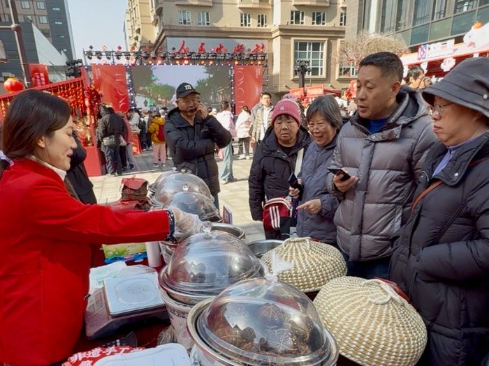 隆福广场上市集互动表演吸引路人