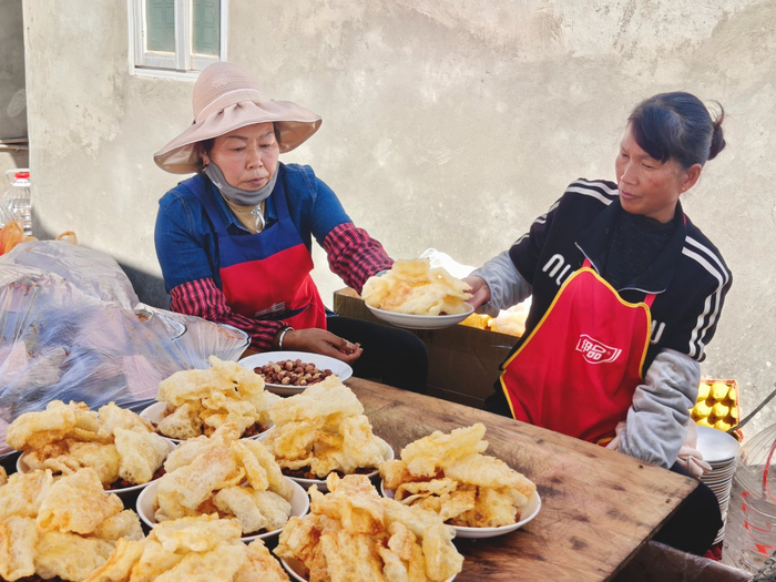 54岁的朱桂仙是团队主厨,20多年经验让她深谙本地口味:“夹沙肉、粉蒸羊肉、黑皮是必上特色,高丽肉、腌生排骨、凉猪头肉更是拿手。”从“老八碗”到荤素搭配的精致宴席,餐桌之变反映出农村生活水平的跃升。她每场宴后必问意见,在烟火里打磨手艺,让乡菜成为留得住、传得开的标识。