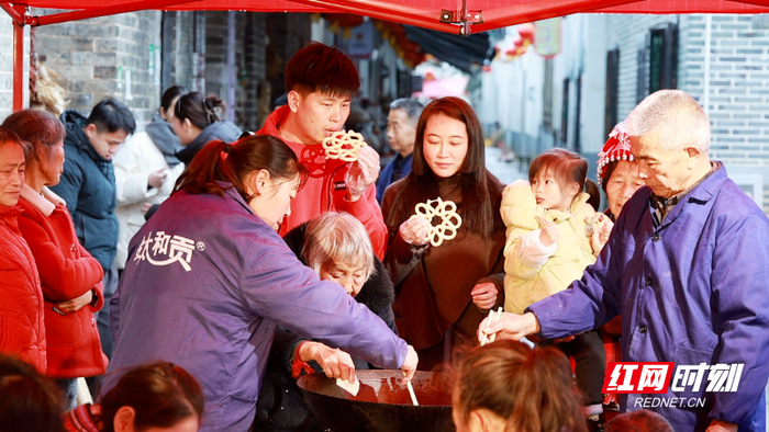 在沙洲民俗广场,非遗展演、民俗体验、瑶乡美食等特色活动精彩纷呈,红色文旅与乡村年味相得益彰,吸引大批游客纷至沓来,景区日均接待游客量持续攀升,成为春节假期汝城文旅市场的热门“打卡地标”。来自郴州的游客刘春花说:“和家人一起来沙洲打卡,这里年味特别浓,到处张灯结彩、喜气洋洋。我们不仅重温了‘半条被子’的温暖故事,还体验了抖糍粑等丰富的民俗活动,热闹又有特色。一家人逛古村、赏非遗、品年味,既温馨又有意义,这个年过得特别充实、特别开心。”