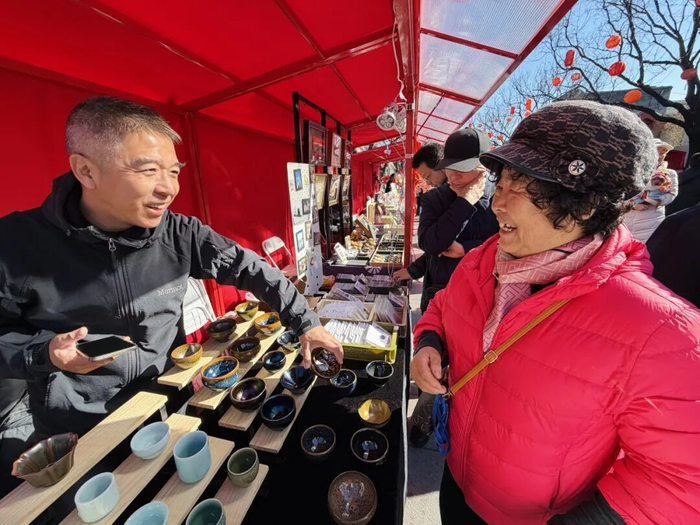 上午10点多,“宛平有戏”迎宾仪式迎接游客入城,大年初二的宛平城张灯结彩,热闹非凡。“离得也不远,一看还非常好,比较喜欢这些瓷器。”“这庙会最好的就是人多、人气旺,比较有特色的就是那个县衙门,还有那边唱戏的。”游客们逛得起劲儿。