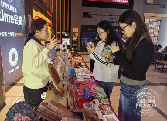 以往大家是低头刷手机等开场,那天不少人围在一个摊位前——延边大学的师生把“延礼文创”搬进了影院,朝鲜族传统纹样的帆布包、手工编织的挂饰,比爆米花还抢手。