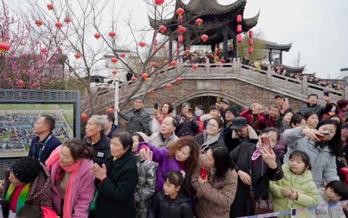 2月24日,农历正月初九,一年一度的“泰伯庙会”热热闹闹地拉开了大幕。四面八方的人流涌向这里,有本地乡邻,也有从周边城市专程赶来,上万名游客挤挤挨挨地穿行在老街小巷里,只为感受江南新春最地道的年味。