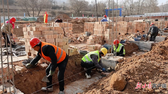 去年秋冬之交,天气渐寒,为了让受灾群众早日住上新居,承担建设任务的甘肃九建抢时间、赶进度,迅速组建党员突击队,全员奋战在施工一线,提前统筹订购建材。11月初,组织工人进场,在封冻前完成场地土方回填35000立方米、施工现场围挡860米、42户的条形基础浇筑和23户的基础砌体砌筑。