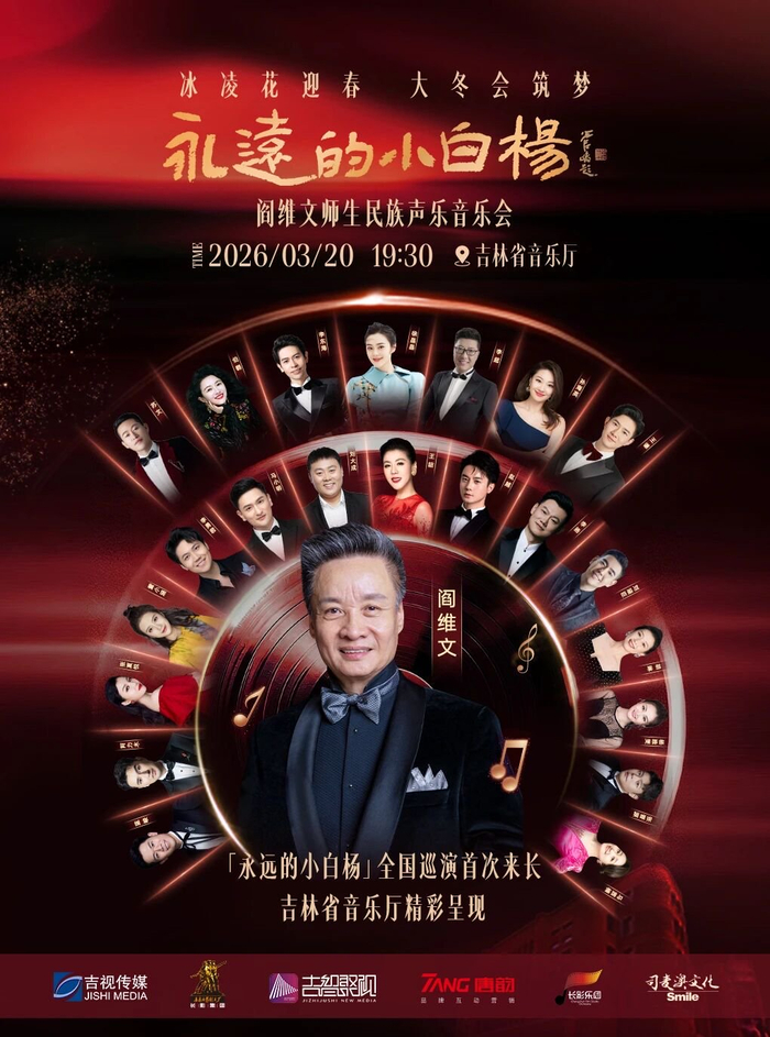 为迎接2027年第33届世界大学生冬季运动会,营造浓厚冰雪文化氛围,由吉视传媒、长影集团主办,东北亚新媒体、唐韵传媒承办,吉林省演艺集团协办的“永远的小白杨”阎维文师生民族声乐音乐会,将于3月20日晚在吉林省音乐厅上演,歌唱家阎维文将携弟子为长春观众带来一场高水准的民族声乐视听盛宴。