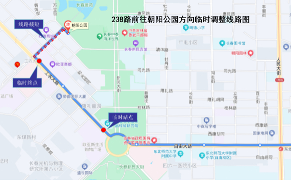 (八)238路前往朝阳公园方向缩短至省医院,前往东环城路方向调整至工农大路。