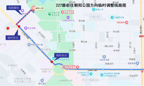 (七)227路前往朝阳公园方向缩短至省医院,前往东环城路方向调整至工农大路。